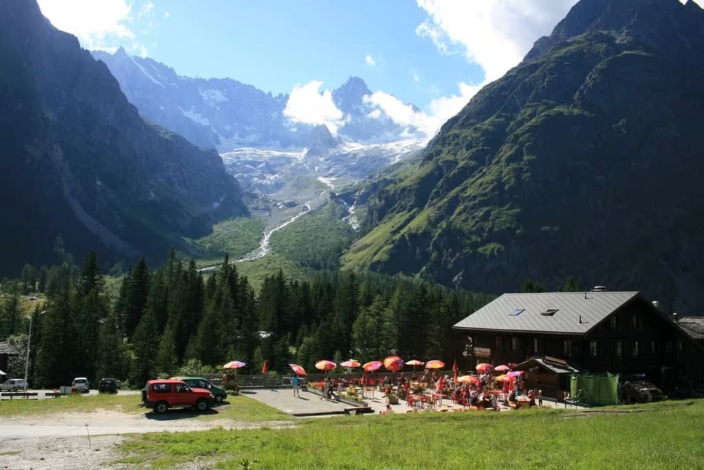 Son point fort est la grande terrasse ensoleillée, qui offre des vues à couper le souffle sur le Glacier de la Neuve et le Mont Dolent, créant un endroit parfait pour se détendre après une journée sur les sentiers.